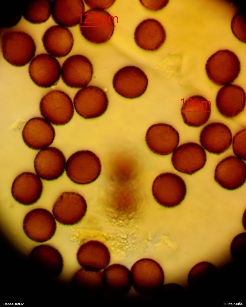 Šīm paraugs nav saglabājies? Nevaru saprast, vai sporas ir ar tīkliņu no adatiņām, vai ar līnijām. Īsti nesanāk neviena man zināma suga.