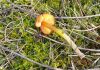 Ļoti neparasta kombinācija - īsa melna kājiņa un apaļīgi plakana galviņa. Un uz nobirām. Gļotsēņu atslēga kā cerīgāko piedāvā nabas jāņodzīti, bet tai neredzu "nabiņu" un nobirām arī nav raksturīga. Šķirstot noteicēju, visas līdzīgās atduras pret pēcsniedzītēm, kas gluži nevarētu būt :D Olītēm melnas kājiņas nav tipiskas (ja tiešām melna), tad paliek lampītes. Par garkājas lampīti (kā blakus) vismaz pagaidām šo nosaukt grūti ;) Atliek cerēt, ka nobriedīs tiktāl, lai mistēriju izdotos atrisināt :)
