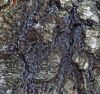 Cauri daudziem foto stiepjas tievi pavedieni (neskaitot to resno striķi), vajadzētu tiem labāku tuvplānu - vai uz tiem nav bumbuļveida paresninājumi dažās vietās. Resp., jāsaprot, vai tie ir sēņu pavedieni, vai kapilīcijs. Mizas sveķenīti es tā pārliecinoši neesmu mikroskopējusi. Nezinu, vai tai var būt līdzīgas sporas kā mainīgajai sveķenītei, bet mizas sveķenītei sporas mazliet grupējas (to var nepamanīt) un galvenais - tai ir tādi tievi gludi kapilīcija pavedieni ar maziem bumbulīšiem.