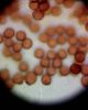 Nu, melnas! Varbūt būšu pārsteigusies, par kājiņu nepateikšu, aiziešu vēl apskatīt. Vai Jums ir kāda doma, kas cits tas varētu būt? No plazmodija bildēta tā pati vieta dažādās dienās, bet visu laiku smidzina, norakstīju uz sliktu attīstību. Nu, jā, zem un virs tā melnā ir tīģerkrāsas bumbiņas ar kājiņu. Ja ir cits variants, iešu ņemšu paraugu, mājās atnestais kaut cik nobriest, dabā nekā. Plazmodijs oranžs.