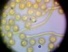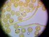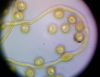 Vai sporu mākonis bija staipīgs? (tā vajadzētu būt režģa gļotsēnei) Foto vairāk līdzinās kādai no pilienītēm.