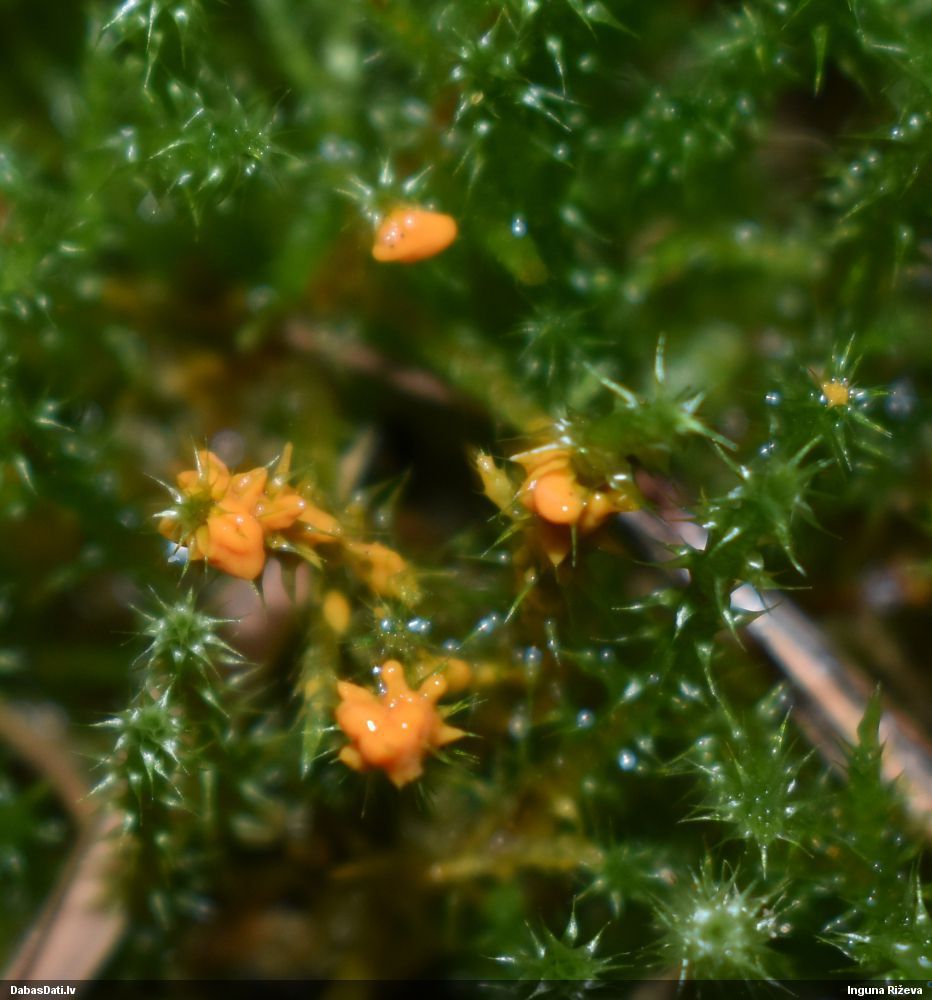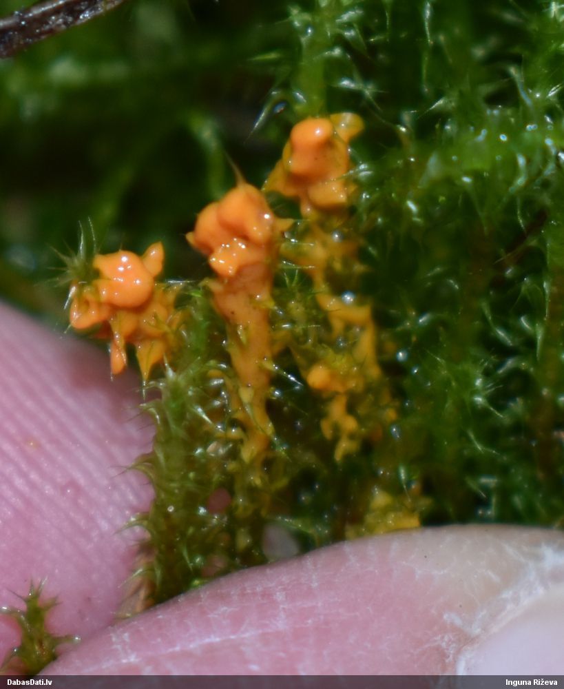 Sveiciens! Atradu paraudziņu kopējā krājumā. Izskatās nobriedis, tika turēts sausā kastītē, sklerociju neatgādina. Pievienots papildus augļķermeņu foto. Būtu jāpieķeras mikroskopēšanai. Augšana uz sfagniem purvā varētu nebūt tā biežāk novērotā parādība..
