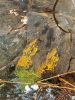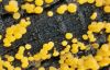 Šis ļoti interesants. Sporas ļoti traumētas, bet tām, kas ir veselas, ir diezgan skaidrs raksts, kas neatbilst nekam no man zināmiem ragansviestiem vai pumpurītēm (pat neņemot vērā izmēru), bet tīri labi atbilst baltapaļajai krāterītei, kas tā nevar būt, jo parauga "ciešais kamoliņš" ir stipri lielāks par tādu. Sporas pēc izmēra varētu atbilst Fuligo licentii, bet no dzeltenā te ir stipri maz. Ja vienīgi ir kāds nobriedušāka attēls, kas rāda, ka ir bijis dzeltens, bet no ilgas stāvēšanas izbalējis.