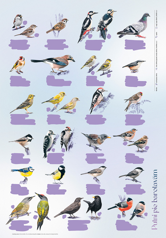 Kad viss iegrimis ziemas mierā, tieši putni kļūst par interesantāko notikumu aiz loga. Lai putnu vērošanu padarītu vēl aizraujošāku, tapis kasāmplakāts "Putni pie barotavām", kurā apkopotas 23 visbiežāk pie barotavām sastopamās Latvijas putnu sugas. Tas aicina ikvienu – gan pieredzējušus ornitologus, gan ziņkārīgus iesācējus – vērot, atpazīt un iepazīt putnus savā apkārtnē.