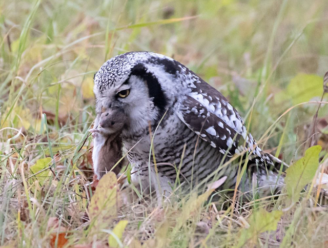 Svītrainā pūce Surnia ulula Salacgrīvas apkārtnē 09.11.2021. Foto: Rolands Linejs