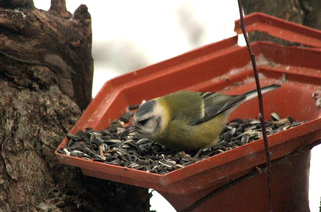 Lielās zīlītes un zilzīlītes hibrīds Parus major x Cyanistes caeruleus. Foto: Irina Mālniece