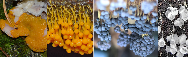 Badhamia utricularis dažādās attīstības stadijās. Foto: Inguna Riževa, Dace Vēvere, Julita Kluša