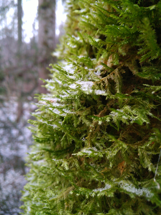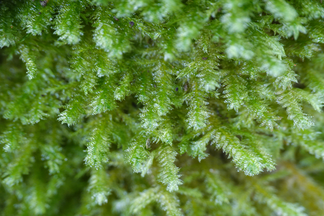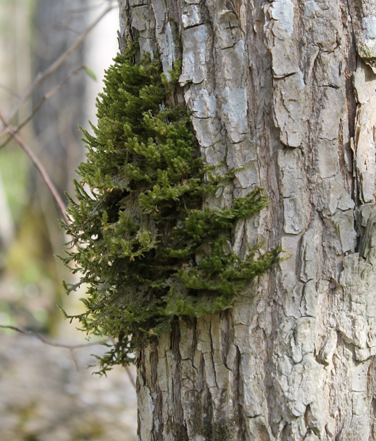 Īssetas nekera Neckera pennata tuvplānā. Foto: Līga Strazdiņa