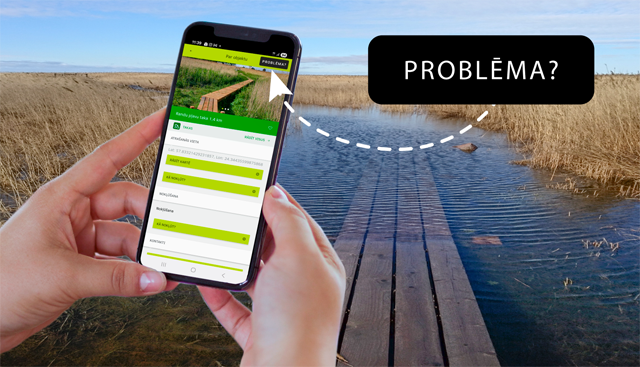 Iespēja operatīvi ziņot par infrastruktūras problēmām mobilajā lietotnē “Dabas tūrisms”
