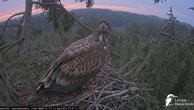Jūras ērgļa jaunais putns Neo Durbes ligzdā 21.09.2025. Foto avots: Dabasdati.lv Forums