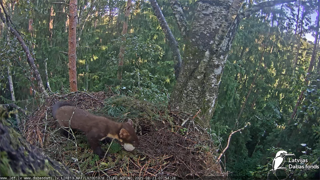 Mazo ērgļu ligzda bērzā. Cauna aiznes nešķīlušos olu 23.08.2024. Foto avots: Dabasdati.lv Forums