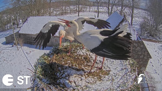 Baltie stārķi ligzdā 05.04.2025. Foto avots: Dabasdati.lv Forums