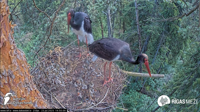 Melnie stārķi ligzdā 23.07.2025. Foto avots: Dabasdati.lv Forums