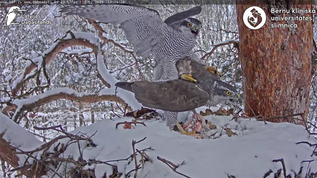 Vistu vanagu pāris ligzdā Bērnu klīniskās universitātes slimnīcas teritorijā 18.02.2025. Foto avots: Dabasdati.lv Forums