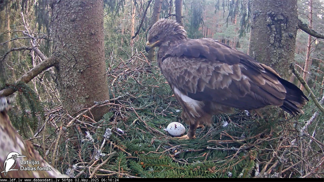 Mazo ērgļu pirmā ola ligzdā eglē 02.05.2025. Foto avots: Dabasdati.lv Forums