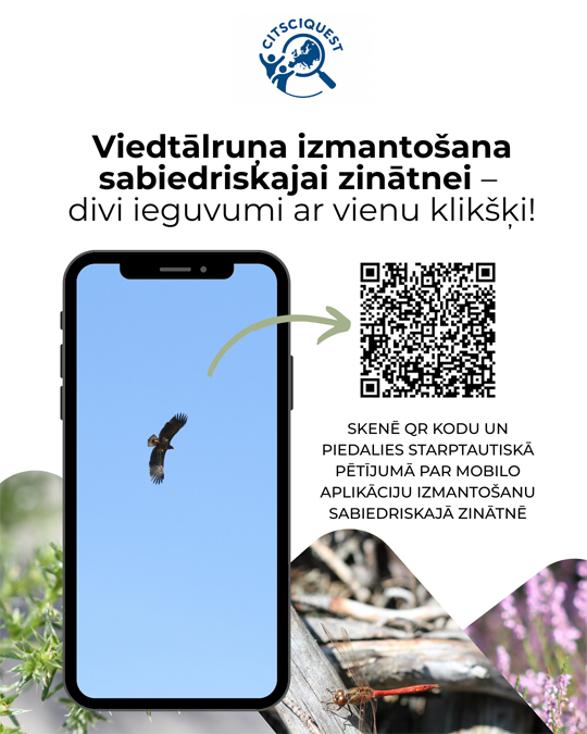 Aicinām piedalīties starptautiskā pētījumā "Viedtālruņa izmantošana sabiedriskajai zinātnei – divi ieguvumi ar vienu klikšķi!" par mobilo lietotņu izmantošanu sabiedriskajā zinātnē.