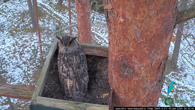 Ūpis Bubo bubo mākslīgajā ligzdā. Foto avots: Dabasdati.lv forums.