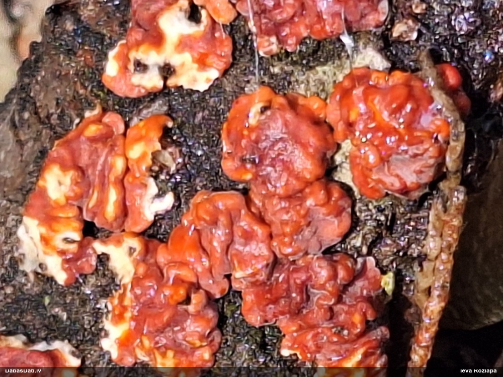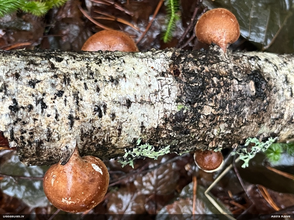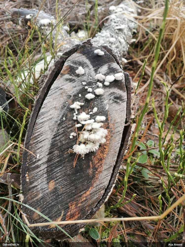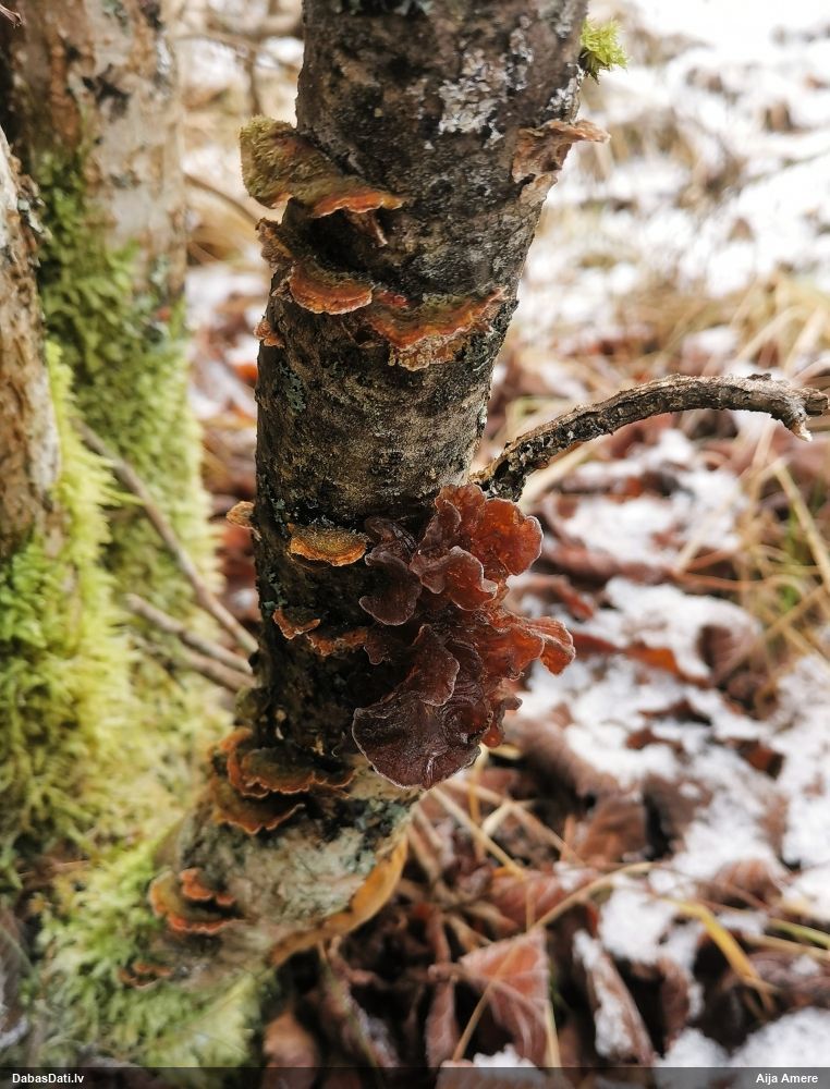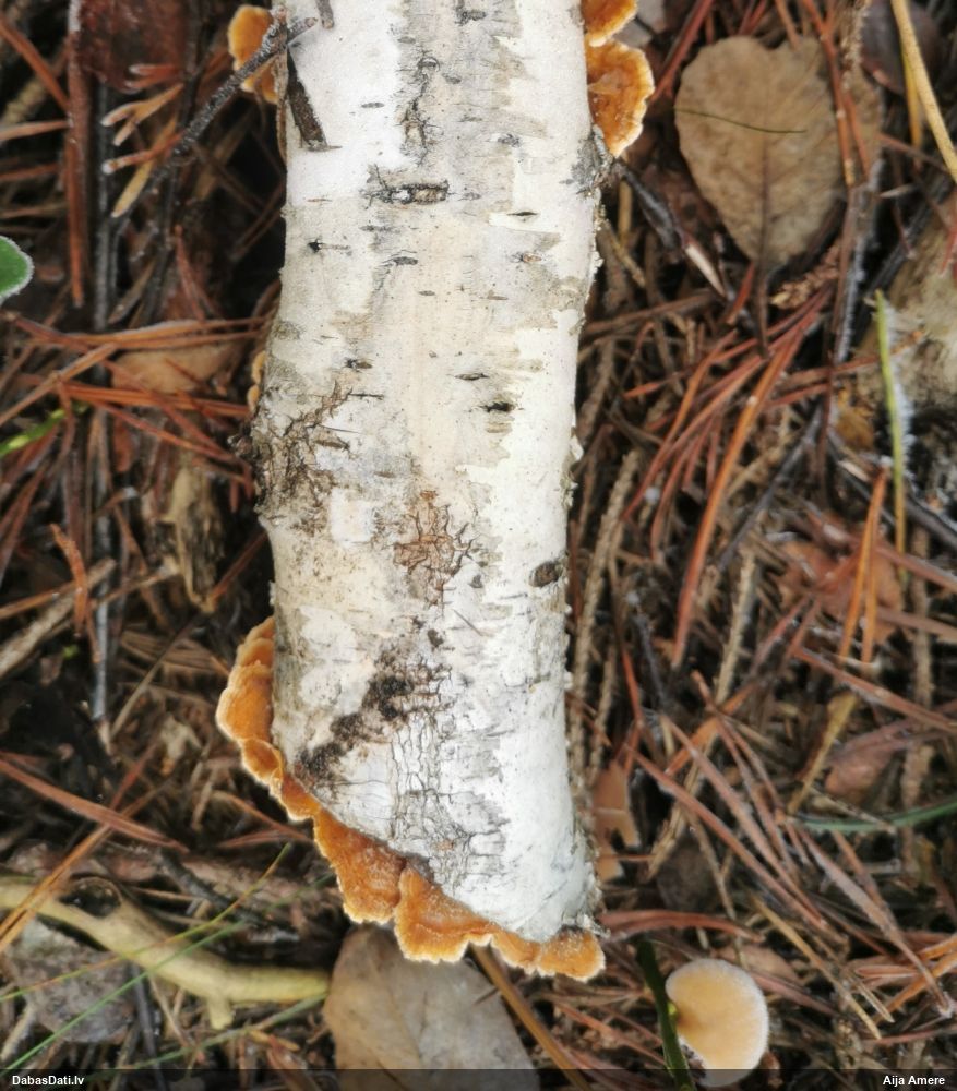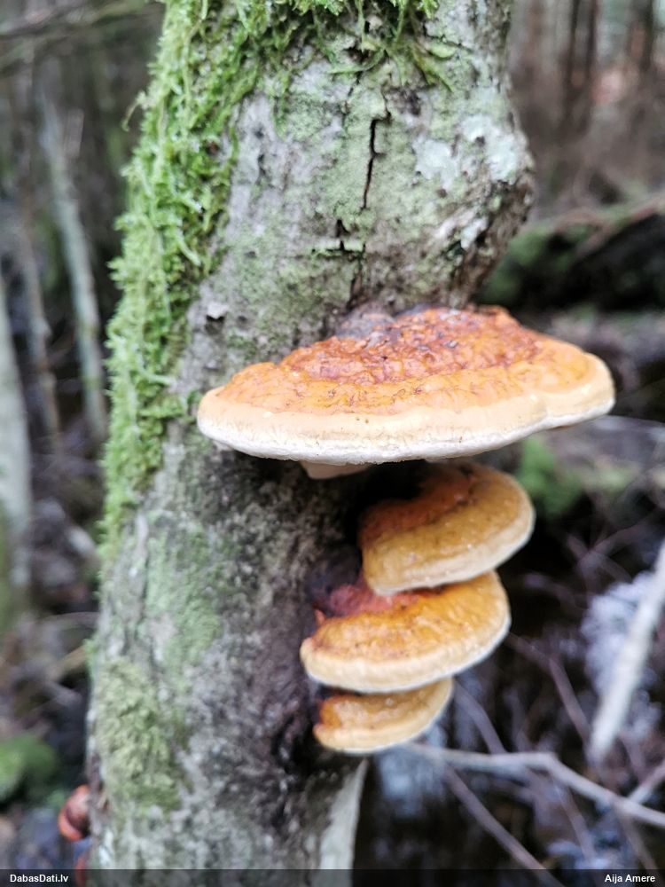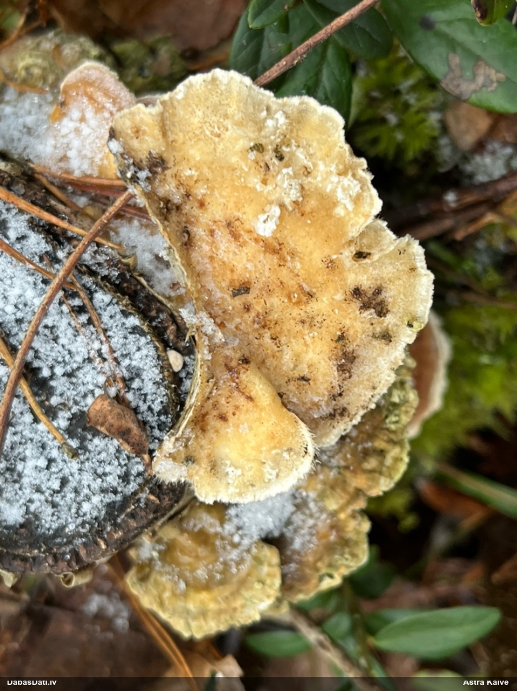 Heterobasidion annosum. Parasti uz priedēm, retāk uz citiem skuju kokiem, vēl retāk uz lapu kokiem, t.sk. uz bērziem.