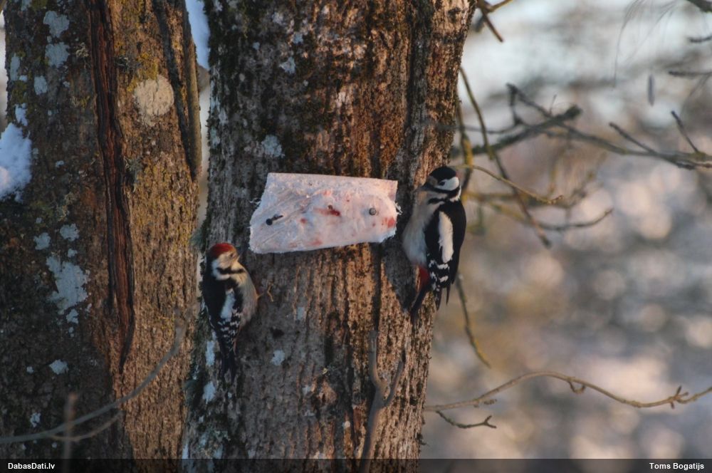 Bildēs divu dažādu sugu dzeņi.;) Pirmajā dižraibā M,otrajā-vidējais.