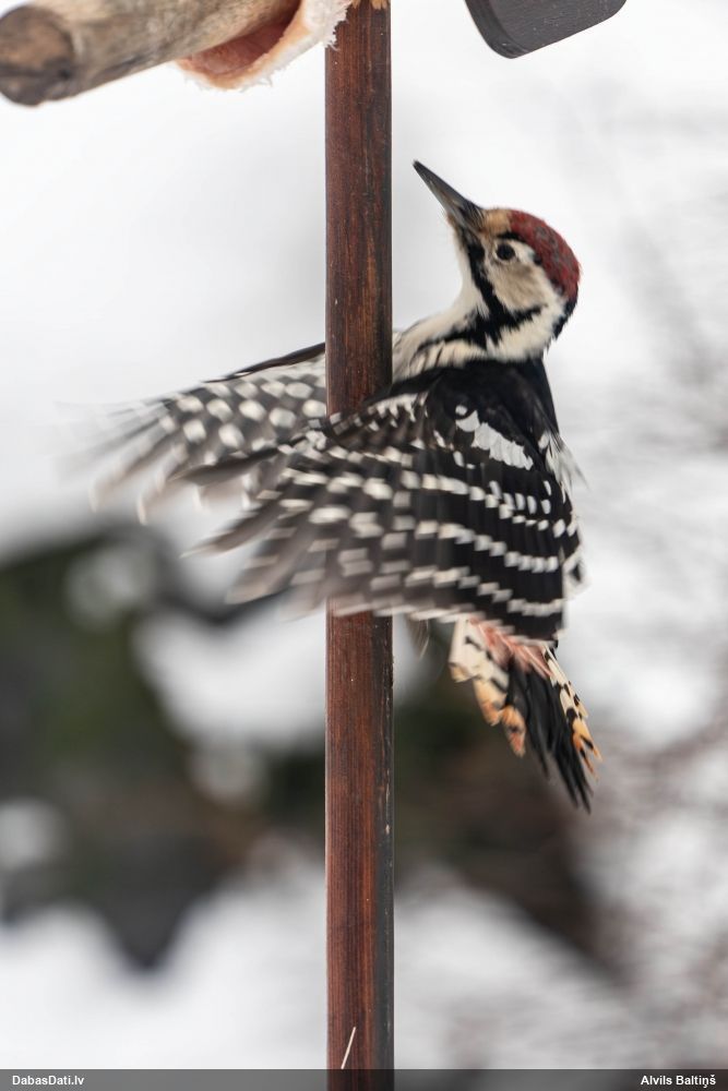 Abās bildēs viens un tas pats putns. Lai arī tie dzeņi man jauc galvu :), bet te es palieku pie vidējā. Varētu jau būt dižraibā jaunulis, bet nav tumšās svītras virs acs.