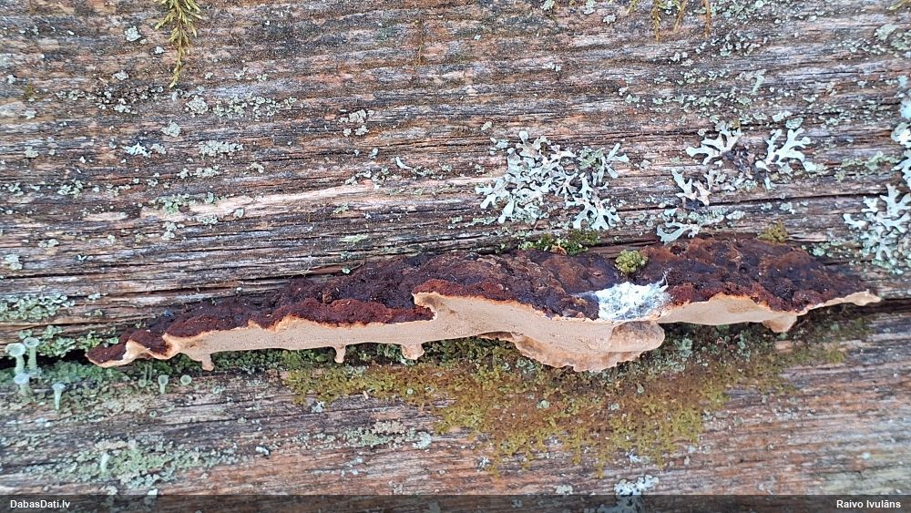 Taisnība gan, micēlija virspusē. Šis samtainais, velvetam līdzīgais micēlija tīklojums ir novērojams uz ilglaicīgi noturīgām, sveķainām eglēm, relatīvi bieži. Mans izlases apjoms gan konkrētajā gadījumā ir n=1. Noteikti ieteiktu rūpīgi pārlūkot publikāciju, kurā suga aprakstīta. Tur ir pievienoti izteiksmīgi dzīvotnes attēli. Veiksmes atrast sugu!