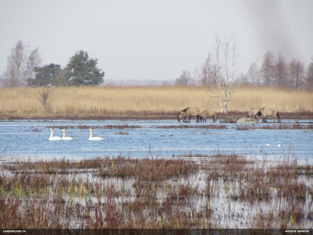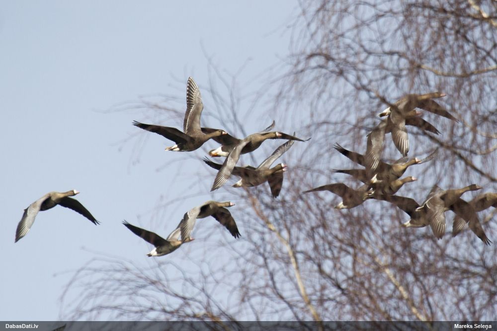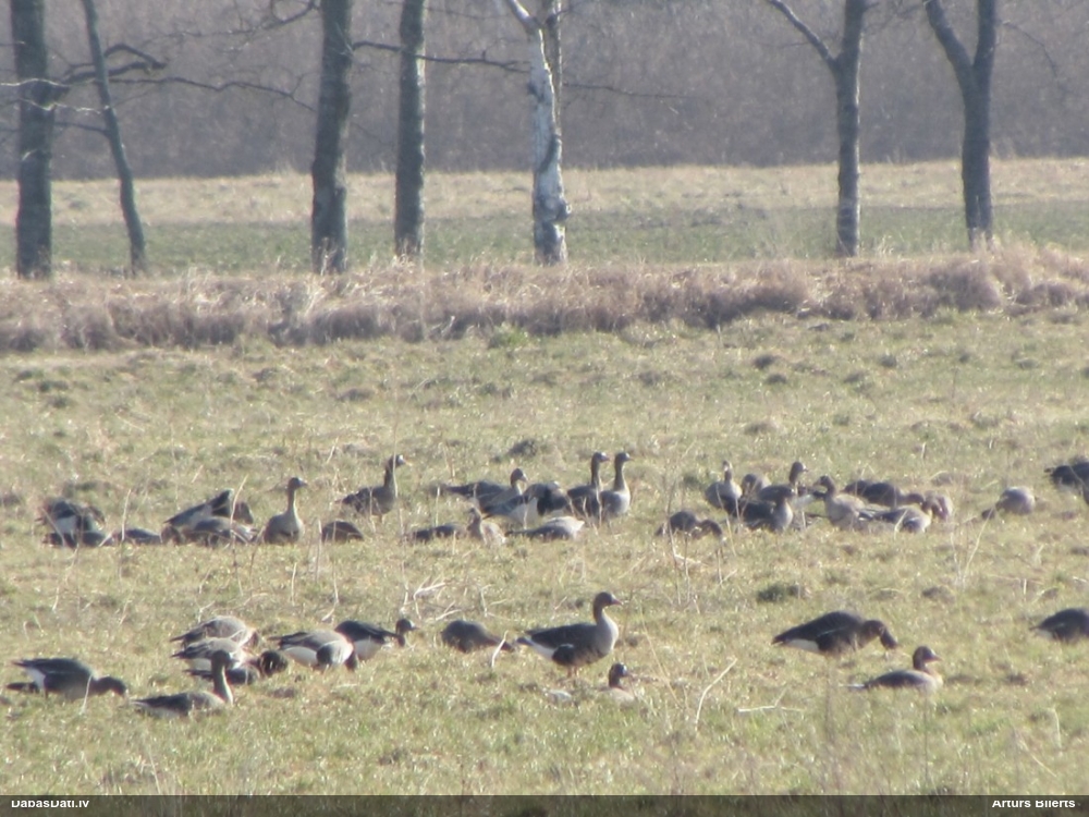 2024. oktobra sākumā pa ceļam uz Lietuvu novērots Sātiņos kopā ar 2 līdzbiedriem (jaunie putni), 2025.g. decembrī arī turpat netālu Lietuvā pie Rusnes.