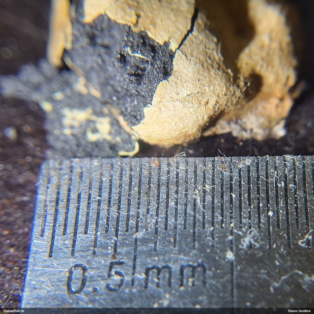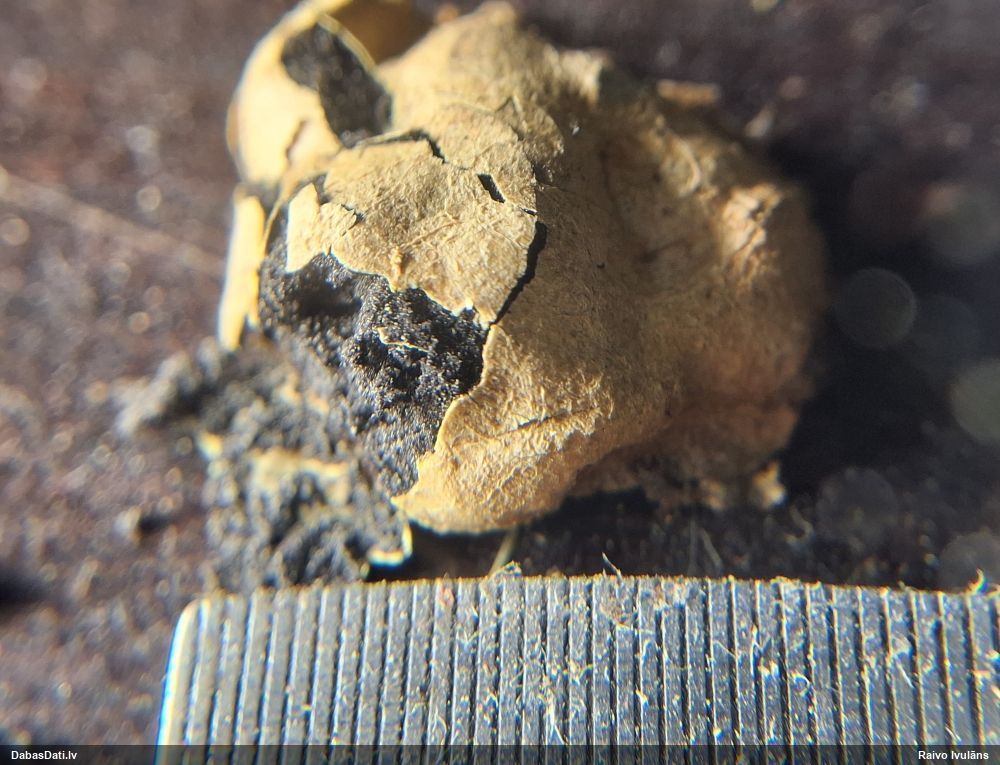 Skatoties uz nelīdzeno virsmu, var būt grubuļainais Fuligo luteonitens, bet droši to varētu pateikt mikroskopijā pēc sporām