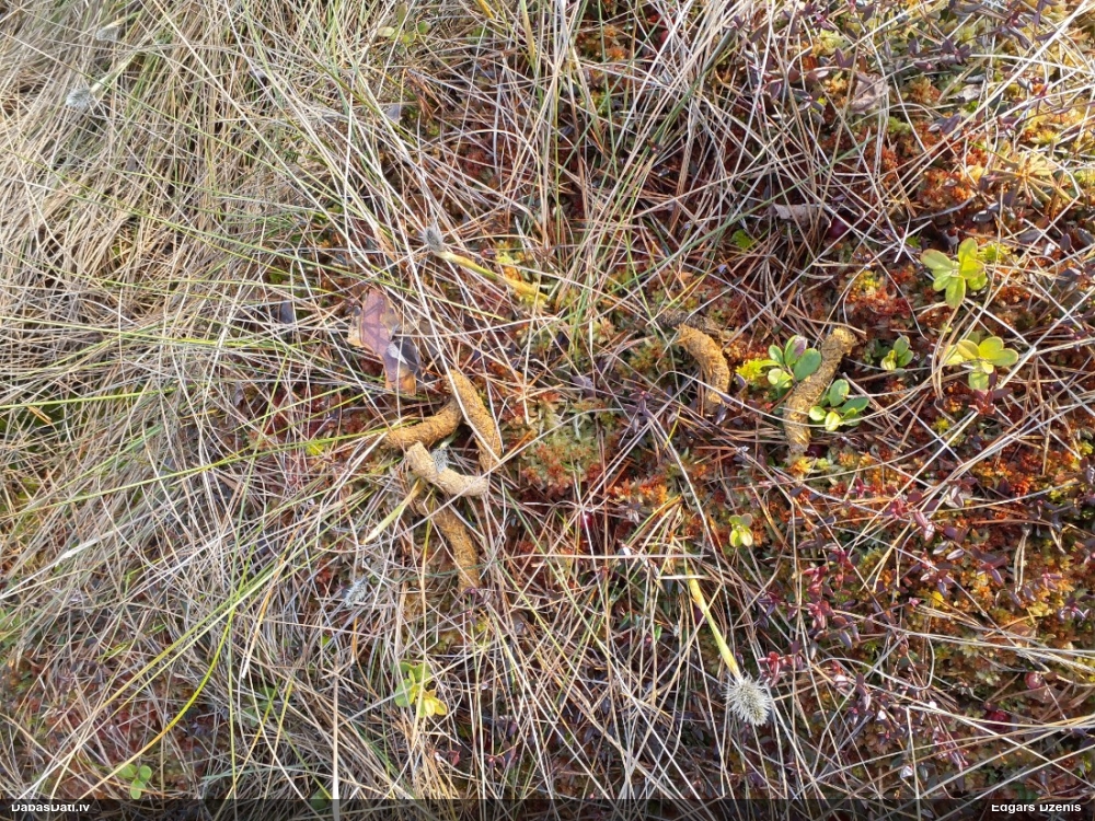 Sveiciens! Atradu paraudziņu kopējā krājumā. Izskatās nobriedis, tika turēts sausā kastītē, sklerociju neatgādina. Pievienots papildus augļķermeņu foto. Būtu jāpieķeras mikroskopēšanai. Augšana uz sfagniem purvā varētu nebūt tā biežāk novērotā parādība..