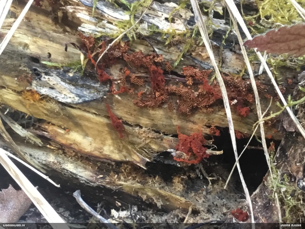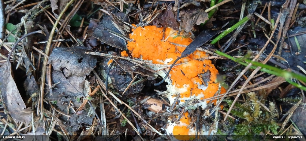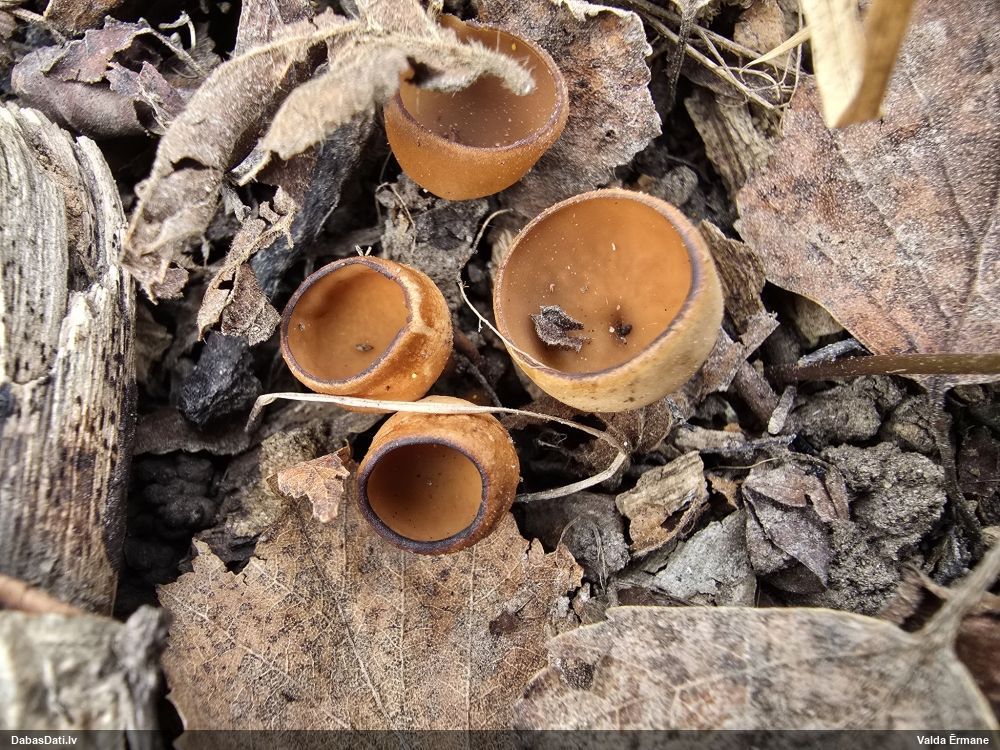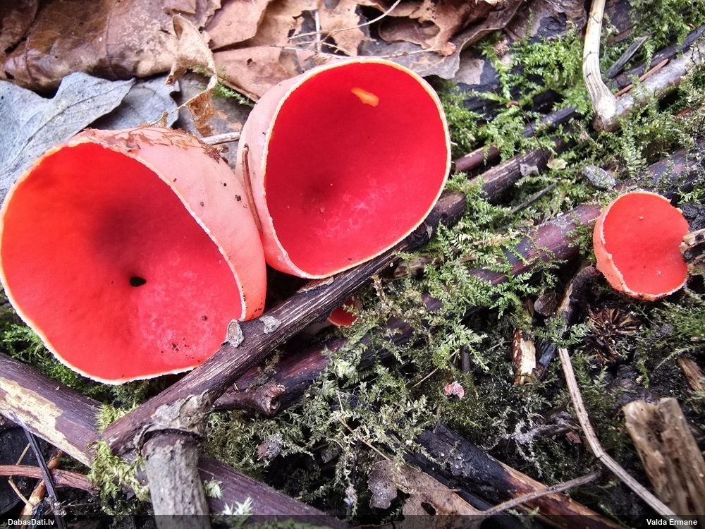 Pieņemot, ka uz egļu sveķainām rētām, tad Sarea difformis (Fr.) Fr. . Protams, vislabāk šādus būtu noteikt balstoties uz mikro pazīmēm.