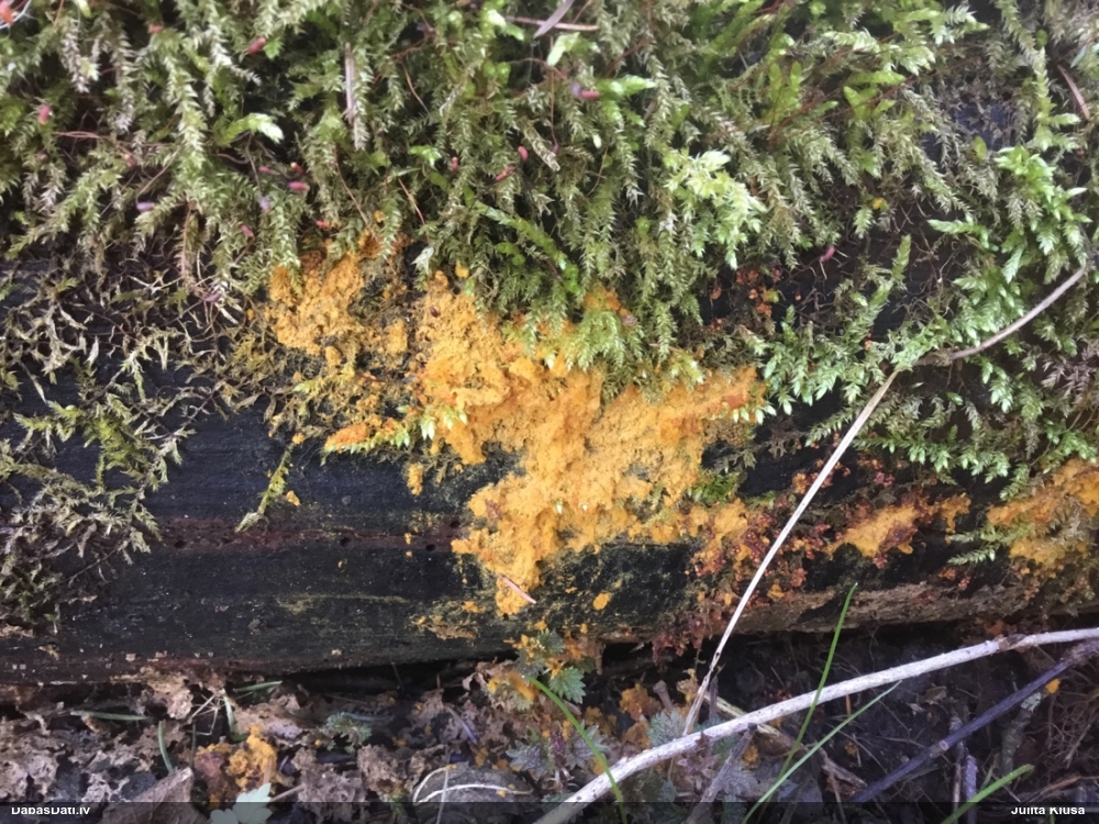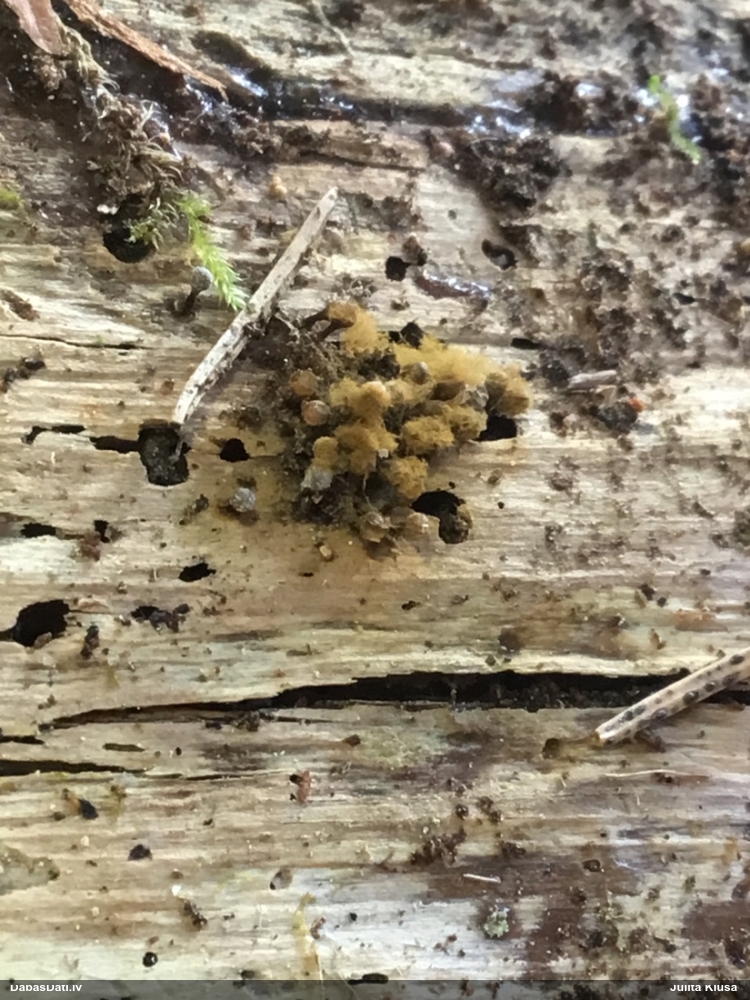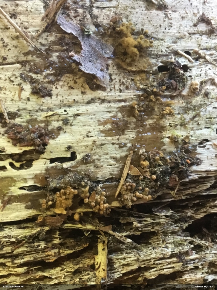 Man šis vairāk izskatās pēc nepilnīgas attīstības (stūrainās sporas arī no tā), tāpēc smalkas detaļas var nebūt precīzas. Priekš Diderma spumarioides atbilst ne tikai pakāje un sporu izmērs, bet arī tipiskais augšanas laiks augustā. Tas, kas mulsina, ir minētā priede, jo citos šīs sugas novērojumos priede nav minēta, un mežs tipiski vairāk nemorāls.