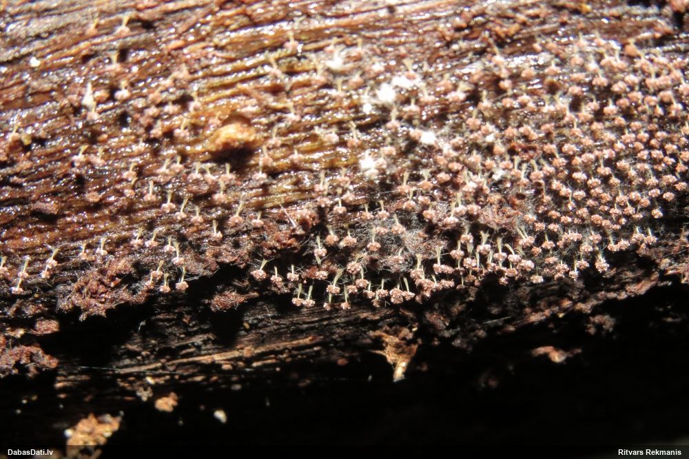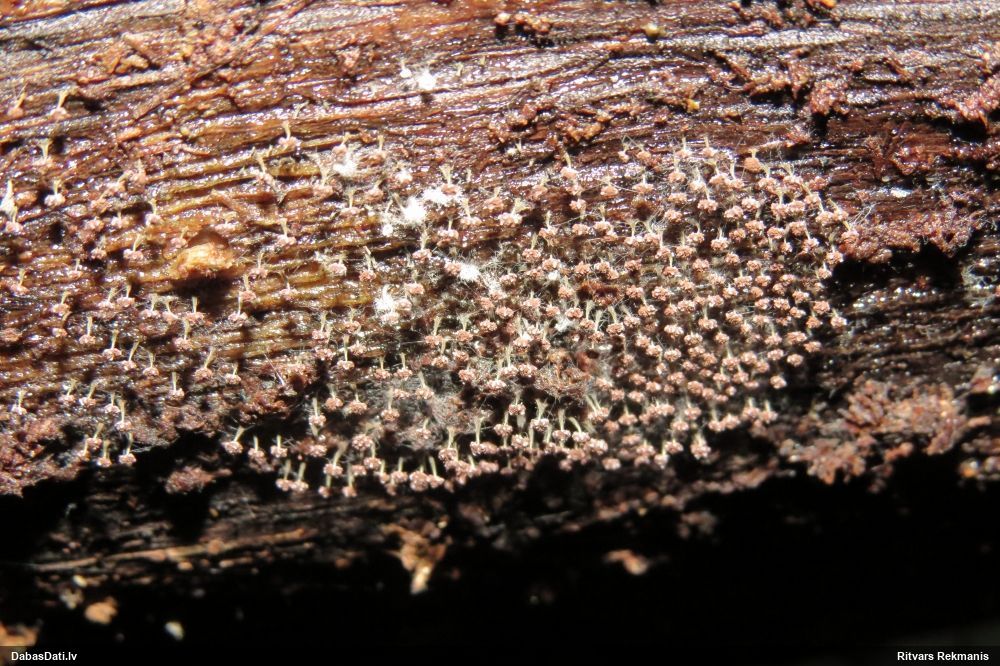 Jā, sugas anamorfa - ar viencipara milimetros mērāmu augstumu un tikai pāris mm diametrā. Tikmēr teleomorfa (gaišbrūns disks vai sekls kausiņš līdz 1 cm diametrā) , dēvēts arī par Ascocoryne solitaria, pagaidām nav Latvijā konstatēts. Tā vai citādi, jauna suga Latvijai. Korektākais zin. nosaukums pēc tagadējiem standartiem - abām formām Ascocoryne albida [ne albidia]. Par piemērotu latvisko nosaukumu jādomā. Par cik abas formas ir vizuāli tik atšķirīgas, nav viegls uzdevums.