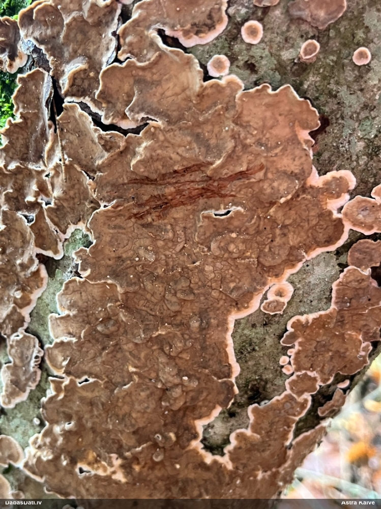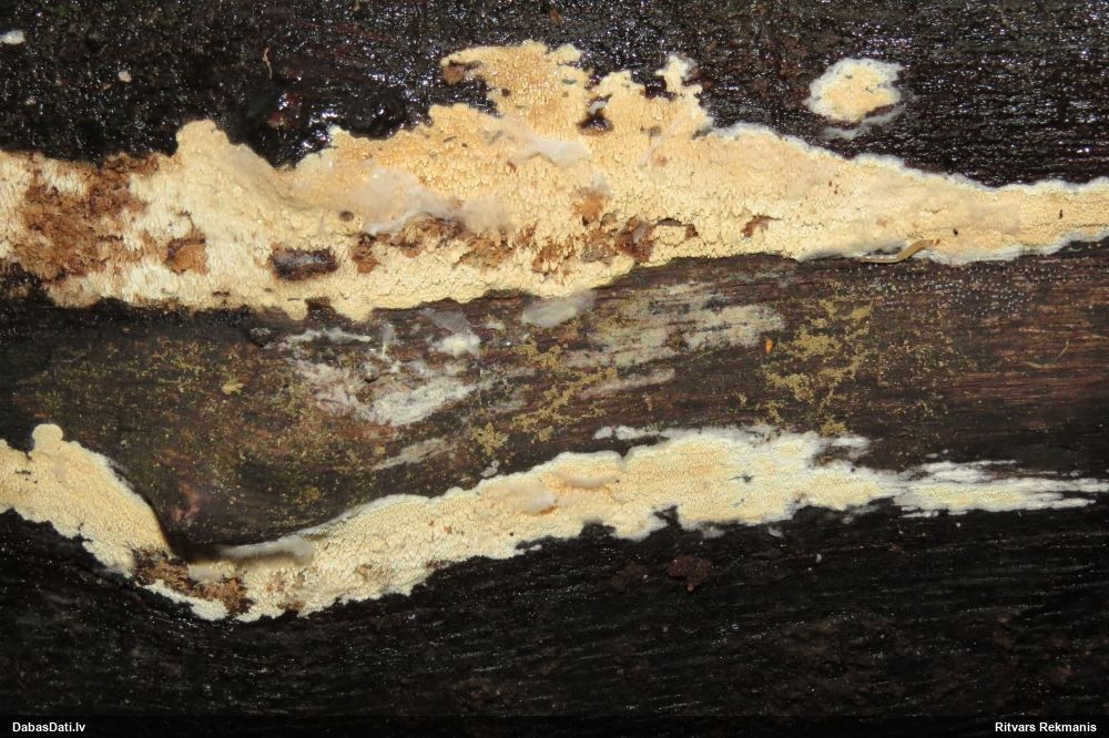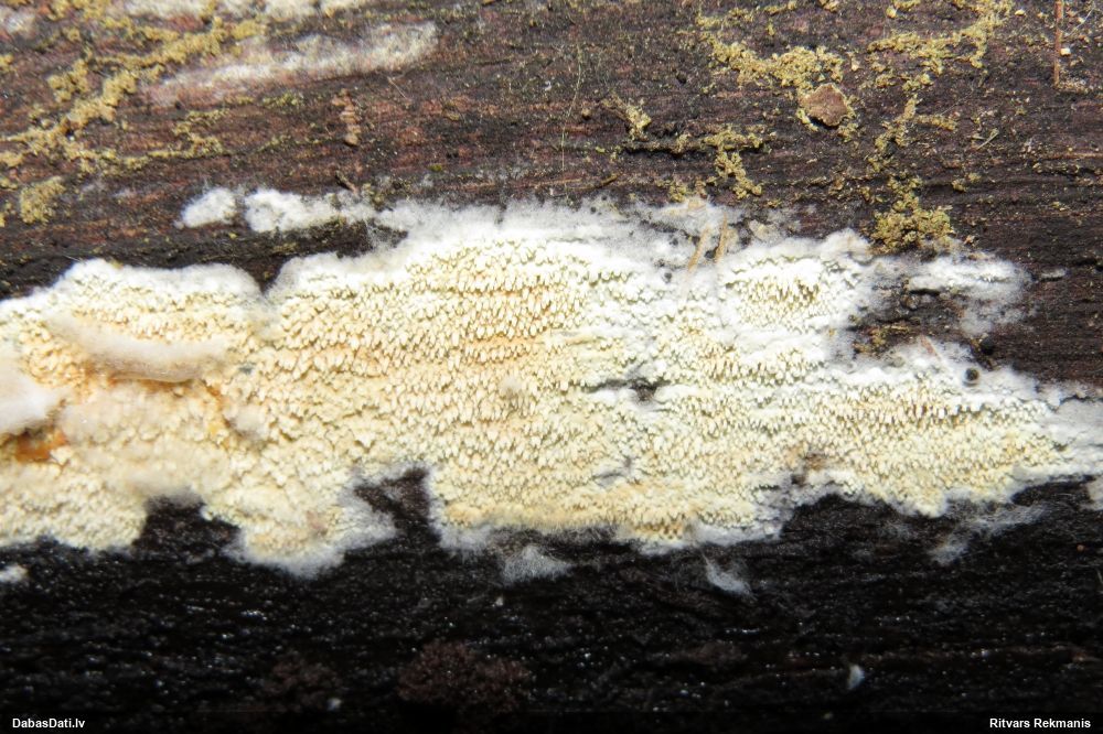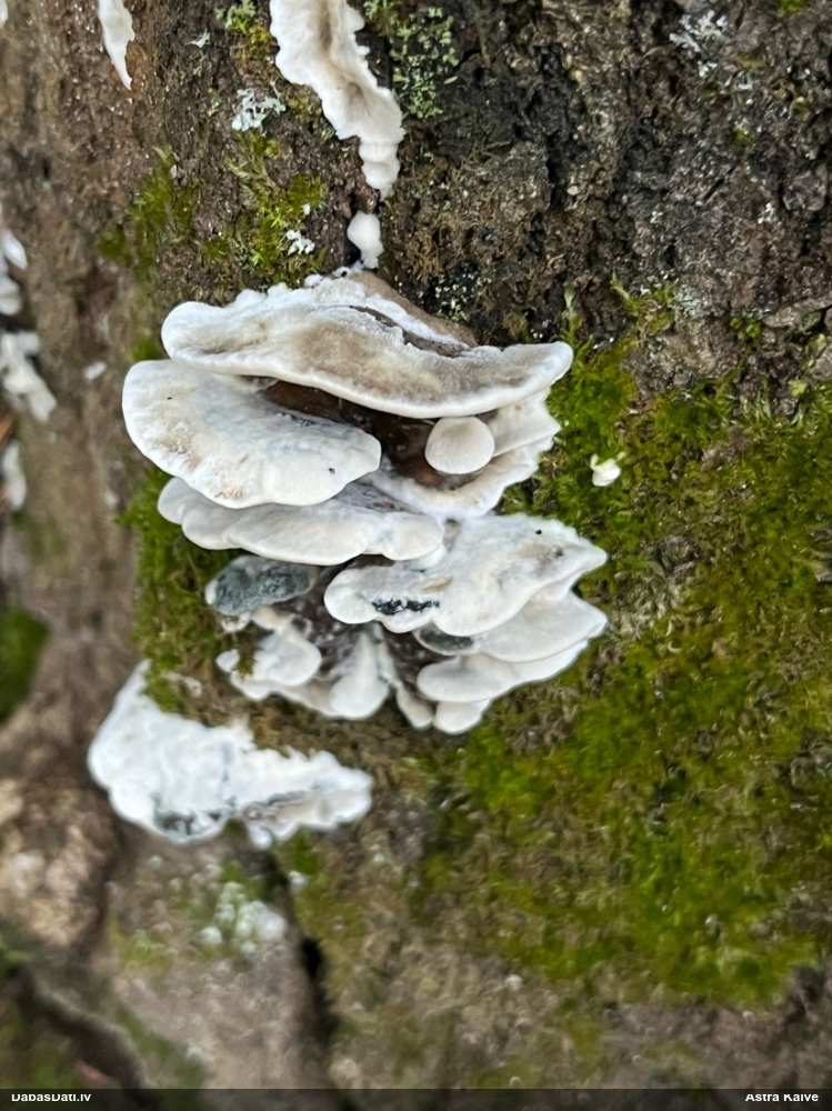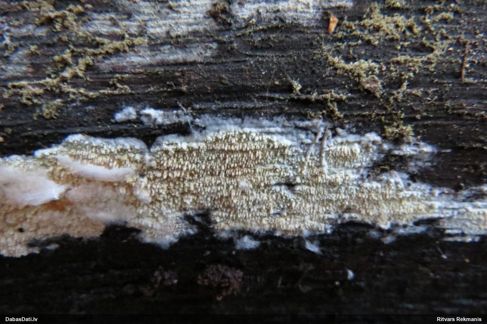 Želejas flēbija normāli uz lapkokiem. Šeit drīzāk Skeletocutis amorpha. Bet nu īsti nevar saprast