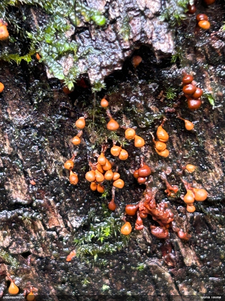 Milzumpaldies, Iveta! Kad būs skaidrs, ka dabasdati pēc mēneša dodas no šīs vietas prom uz jaunām mājām, plānoju atjaunot atslēgu, "izspiežot" no Dabasdatiem visu jaunāko info, un tādi pieredzes stāsti labāk palīdz saprast, kas jālabo. Ideāla gan nebūs, jo tam man nav laika (un finansu), bet kaut ko vismaz. :) Bet hipotēze sakrīt ar to, ko es redzēju, saņemot paraugu. :)) Un pēc atslēgas man arī tā ar visu oranžo krāsu sanāca kā viena no 2 pamathipotēzēm, bet man papildus bija zināms substrāts (iespējams, melnalksnis), vienīgi formu ievadīju kā apaļīgu, jo paskatījos, ka atslēgā izstieptā ir tāda ļoti izstiepta. Bet pilienveida arī būtu bijis jāizskata. Tā ka paldies abām, Ivetai un Renātei! Kaut kad vēlāk, kad būs vairāk laika, arī mikroskopēšu, bet izskatās visai pārliecinoši ar atsevišķiem (no sporu mākoņa), platiem kausiņiem.