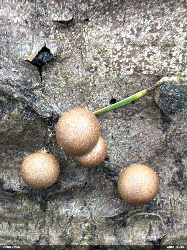 Riskēju, neredzot mikroskopijas foto, bet uz ābelēm vajadzētu būt H.karstenii. A.Kunts teica, ka uz ābelēm esot bieži sastopama Trichia contorta (plašā nozīmē), bet aizdomājās, ka man varētu būt taisnība, ka šaurā nozīmē varētu būt arī H.karstenii, - tiktāl viņš neesot iedziļinājies. Bet "spurainais apraksts" mikroskopijai liecina par H.karstenii, kādu es to saprotu.