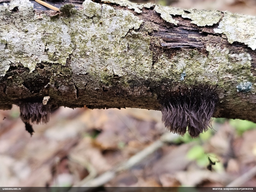 Riskēju, neredzot mikroskopijas foto, bet uz ābelēm vajadzētu būt H.karstenii. A.Kunts teica, ka uz ābelēm esot bieži sastopama Trichia contorta (plašā nozīmē), bet aizdomājās, ka man varētu būt taisnība, ka šaurā nozīmē varētu būt arī H.karstenii, - tiktāl viņš neesot iedziļinājies. Bet "spurainais apraksts" mikroskopijai liecina par H.karstenii, kādu es to saprotu.
