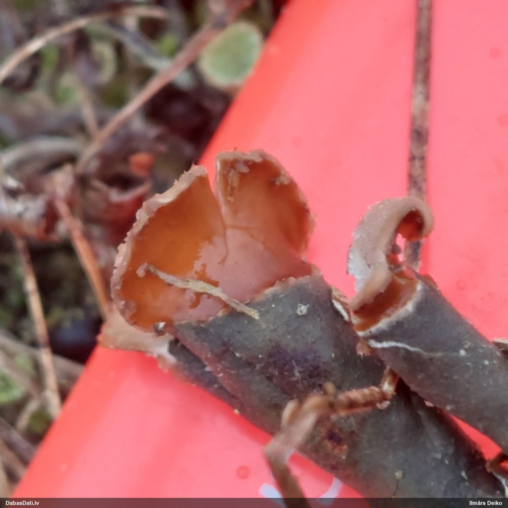 Milzumpaldies, Iveta! Kad būs skaidrs, ka dabasdati pēc mēneša dodas no šīs vietas prom uz jaunām mājām, plānoju atjaunot atslēgu, "izspiežot" no Dabasdatiem visu jaunāko info, un tādi pieredzes stāsti labāk palīdz saprast, kas jālabo. Ideāla gan nebūs, jo tam man nav laika (un finansu), bet kaut ko vismaz. :) Bet hipotēze sakrīt ar to, ko es redzēju, saņemot paraugu. :)) Un pēc atslēgas man arī tā ar visu oranžo krāsu sanāca kā viena no 2 pamathipotēzēm, bet man papildus bija zināms substrāts (iespējams, melnalksnis), vienīgi formu ievadīju kā apaļīgu, jo paskatījos, ka atslēgā izstieptā ir tāda ļoti izstiepta. Bet pilienveida arī būtu bijis jāizskata. Tā ka paldies abām, Ivetai un Renātei! Kaut kad vēlāk, kad būs vairāk laika, arī mikroskopēšu, bet izskatās visai pārliecinoši ar atsevišķiem (no sporu mākoņa), platiem kausiņiem.