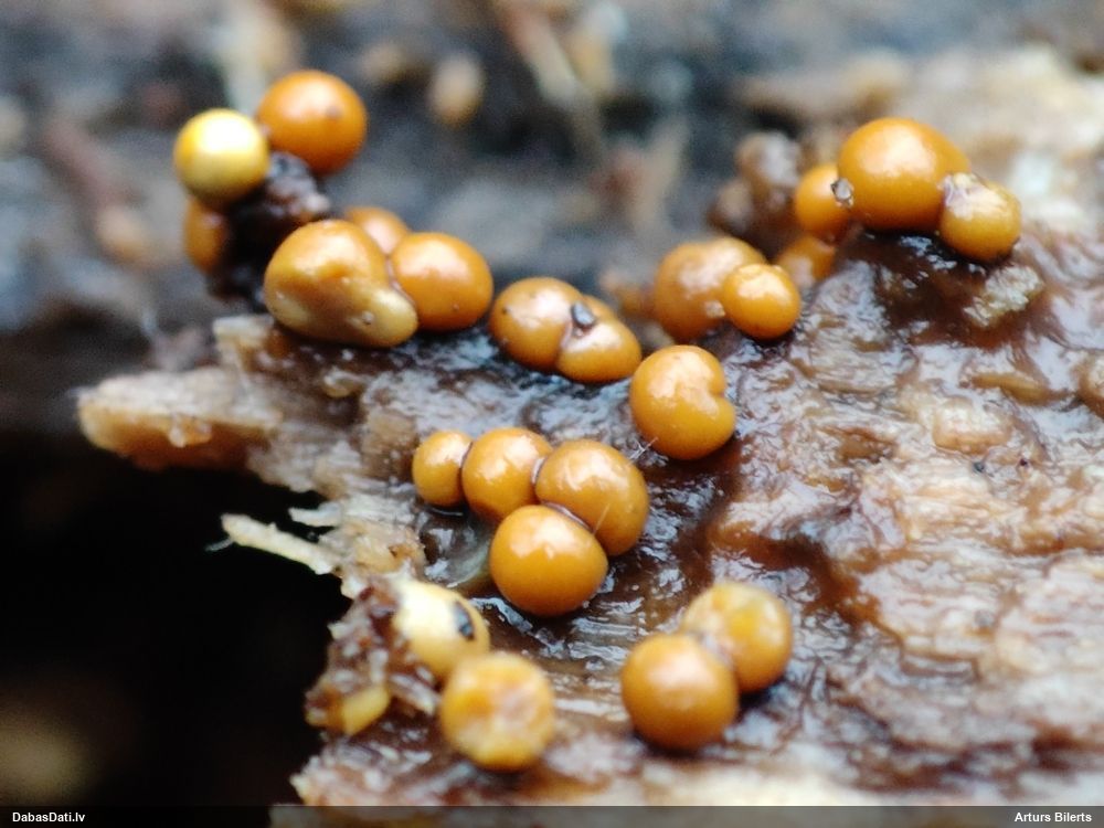 Milzumpaldies, Iveta! Kad būs skaidrs, ka dabasdati pēc mēneša dodas no šīs vietas prom uz jaunām mājām, plānoju atjaunot atslēgu, "izspiežot" no Dabasdatiem visu jaunāko info, un tādi pieredzes stāsti labāk palīdz saprast, kas jālabo. Ideāla gan nebūs, jo tam man nav laika (un finansu), bet kaut ko vismaz. :) Bet hipotēze sakrīt ar to, ko es redzēju, saņemot paraugu. :)) Un pēc atslēgas man arī tā ar visu oranžo krāsu sanāca kā viena no 2 pamathipotēzēm, bet man papildus bija zināms substrāts (iespējams, melnalksnis), vienīgi formu ievadīju kā apaļīgu, jo paskatījos, ka atslēgā izstieptā ir tāda ļoti izstiepta. Bet pilienveida arī būtu bijis jāizskata. Tā ka paldies abām, Ivetai un Renātei! Kaut kad vēlāk, kad būs vairāk laika, arī mikroskopēšu, bet izskatās visai pārliecinoši ar atsevišķiem (no sporu mākoņa), platiem kausiņiem.