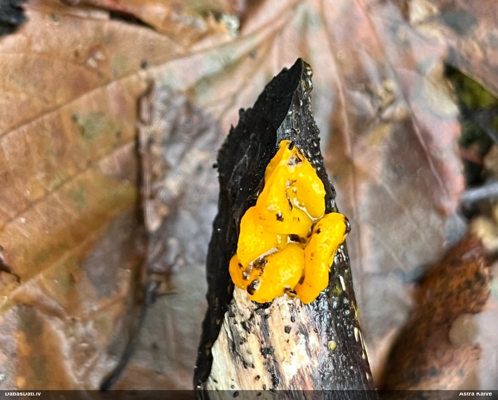 Milzumpaldies, Iveta! Kad būs skaidrs, ka dabasdati pēc mēneša dodas no šīs vietas prom uz jaunām mājām, plānoju atjaunot atslēgu, "izspiežot" no Dabasdatiem visu jaunāko info, un tādi pieredzes stāsti labāk palīdz saprast, kas jālabo. Ideāla gan nebūs, jo tam man nav laika (un finansu), bet kaut ko vismaz. :) Bet hipotēze sakrīt ar to, ko es redzēju, saņemot paraugu. :)) Un pēc atslēgas man arī tā ar visu oranžo krāsu sanāca kā viena no 2 pamathipotēzēm, bet man papildus bija zināms substrāts (iespējams, melnalksnis), vienīgi formu ievadīju kā apaļīgu, jo paskatījos, ka atslēgā izstieptā ir tāda ļoti izstiepta. Bet pilienveida arī būtu bijis jāizskata. Tā ka paldies abām, Ivetai un Renātei! Kaut kad vēlāk, kad būs vairāk laika, arī mikroskopēšu, bet izskatās visai pārliecinoši ar atsevišķiem (no sporu mākoņa), platiem kausiņiem.
