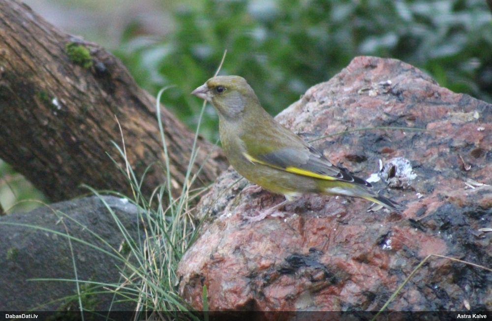Diemžēl bildes kvalitāte, piezūmojot no tel., ir švaka un negribēju arī izbaidīt putnu barošanās procesā, bet mugura zaļa, krūšu daļā - pelēks/gaišs. Pēc i-netā atrastā apraksta varētu būt mātīte, jo nebija "sarkanie vaigi"