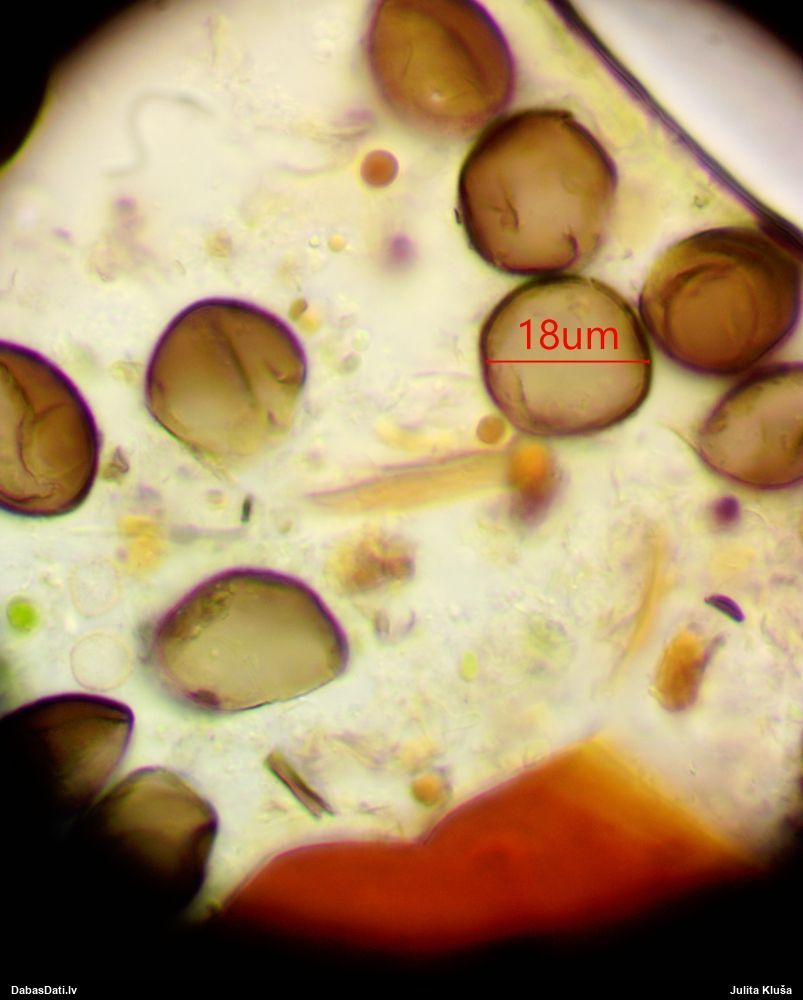 Milzumpaldies, Iveta! Kad būs skaidrs, ka dabasdati pēc mēneša dodas no šīs vietas prom uz jaunām mājām, plānoju atjaunot atslēgu, "izspiežot" no Dabasdatiem visu jaunāko info, un tādi pieredzes stāsti labāk palīdz saprast, kas jālabo. Ideāla gan nebūs, jo tam man nav laika (un finansu), bet kaut ko vismaz. :) Bet hipotēze sakrīt ar to, ko es redzēju, saņemot paraugu. :)) Un pēc atslēgas man arī tā ar visu oranžo krāsu sanāca kā viena no 2 pamathipotēzēm, bet man papildus bija zināms substrāts (iespējams, melnalksnis), vienīgi formu ievadīju kā apaļīgu, jo paskatījos, ka atslēgā izstieptā ir tāda ļoti izstiepta. Bet pilienveida arī būtu bijis jāizskata. Tā ka paldies abām, Ivetai un Renātei! Kaut kad vēlāk, kad būs vairāk laika, arī mikroskopēšu, bet izskatās visai pārliecinoši ar atsevišķiem (no sporu mākoņa), platiem kausiņiem.