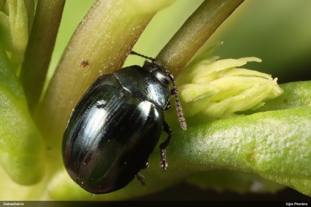 Alkšņu zilā lapgrauža (Agelastica alni) kāpurs.