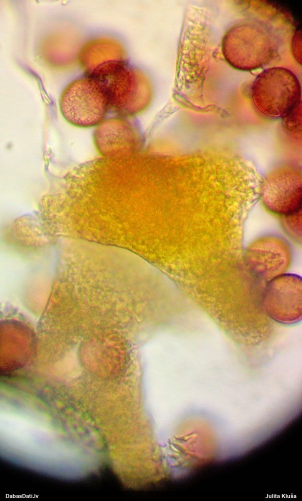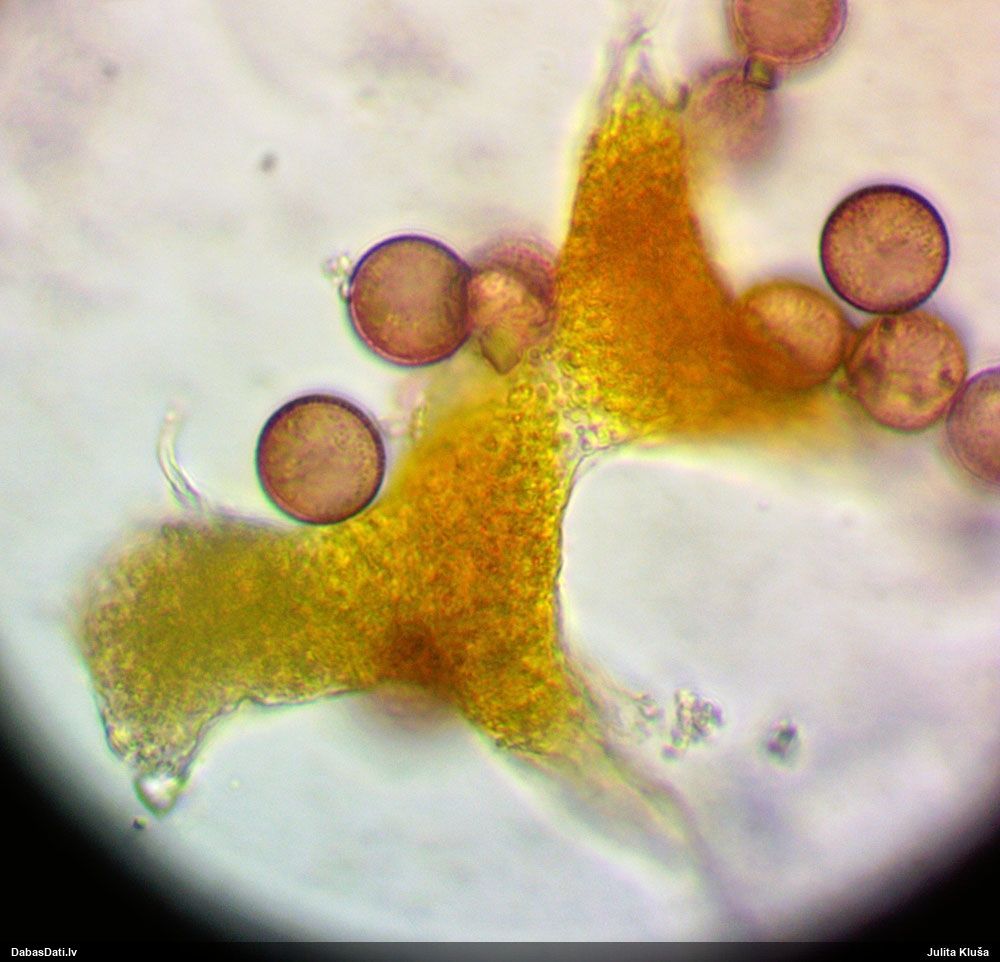 Milzumpaldies, Iveta! Kad būs skaidrs, ka dabasdati pēc mēneša dodas no šīs vietas prom uz jaunām mājām, plānoju atjaunot atslēgu, "izspiežot" no Dabasdatiem visu jaunāko info, un tādi pieredzes stāsti labāk palīdz saprast, kas jālabo. Ideāla gan nebūs, jo tam man nav laika (un finansu), bet kaut ko vismaz. :) Bet hipotēze sakrīt ar to, ko es redzēju, saņemot paraugu. :)) Un pēc atslēgas man arī tā ar visu oranžo krāsu sanāca kā viena no 2 pamathipotēzēm, bet man papildus bija zināms substrāts (iespējams, melnalksnis), vienīgi formu ievadīju kā apaļīgu, jo paskatījos, ka atslēgā izstieptā ir tāda ļoti izstiepta. Bet pilienveida arī būtu bijis jāizskata. Tā ka paldies abām, Ivetai un Renātei! Kaut kad vēlāk, kad būs vairāk laika, arī mikroskopēšu, bet izskatās visai pārliecinoši ar atsevišķiem (no sporu mākoņa), platiem kausiņiem.
