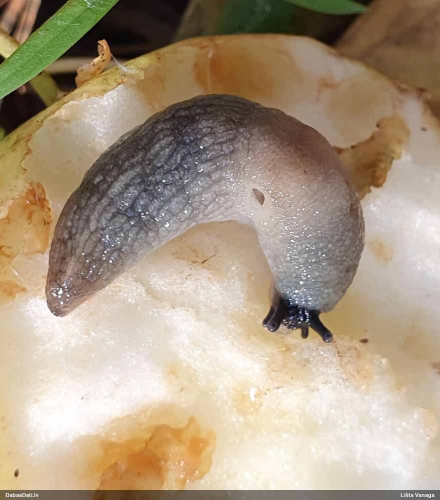 Jā, tumšais kailgliemezis - tieši tā - vienkrāsaina mantija (milzu kailgliemezim būtu raiba).