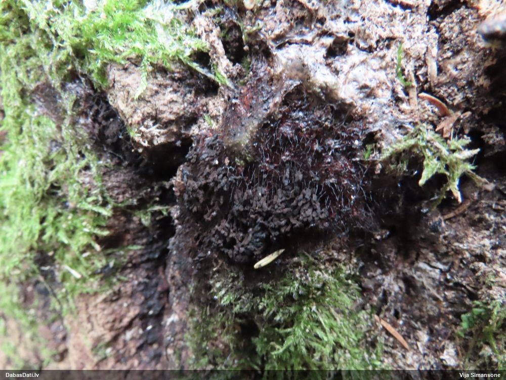 Riskēju, neredzot mikroskopijas foto, bet uz ābelēm vajadzētu būt H.karstenii. A.Kunts teica, ka uz ābelēm esot bieži sastopama Trichia contorta (plašā nozīmē), bet aizdomājās, ka man varētu būt taisnība, ka šaurā nozīmē varētu būt arī H.karstenii, - tiktāl viņš neesot iedziļinājies. Bet "spurainais apraksts" mikroskopijai liecina par H.karstenii, kādu es to saprotu.
