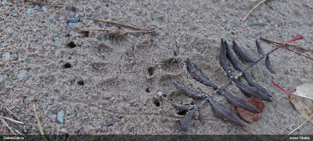 Mērogs būtu noderējis. Bet, tā kā turpat pēdas jau ziņotas 19. oktobrī, būs ticami. Iepriekšējās novērojums: https://dabasdati.lv/lv/observation/s3hfspgj07uo8laqad7881kgq5/