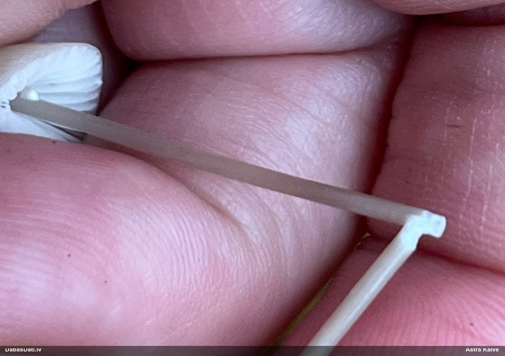 Iveta, paraugs ir pie manis, apskatīju. Nemikroskopēju vēl, bet hipotēze ir skaidra. Būtu interesanti uzzināt "atslēgas stāstu", kas nebūtu ietekmēts no manas hipotēzes, jo izskatās, ka zem šī novērojuma nevienas hipotēzes vēl nav.