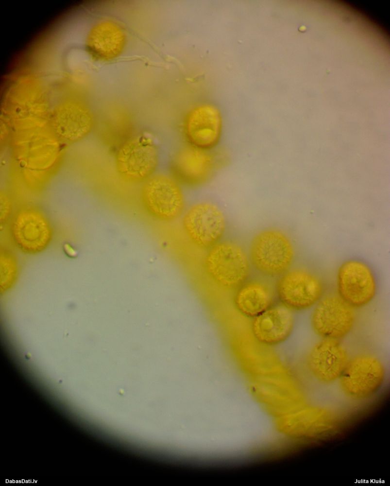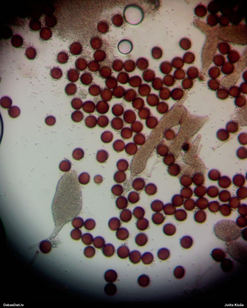 Milzumpaldies, Iveta! Kad būs skaidrs, ka dabasdati pēc mēneša dodas no šīs vietas prom uz jaunām mājām, plānoju atjaunot atslēgu, "izspiežot" no Dabasdatiem visu jaunāko info, un tādi pieredzes stāsti labāk palīdz saprast, kas jālabo. Ideāla gan nebūs, jo tam man nav laika (un finansu), bet kaut ko vismaz. :) Bet hipotēze sakrīt ar to, ko es redzēju, saņemot paraugu. :)) Un pēc atslēgas man arī tā ar visu oranžo krāsu sanāca kā viena no 2 pamathipotēzēm, bet man papildus bija zināms substrāts (iespējams, melnalksnis), vienīgi formu ievadīju kā apaļīgu, jo paskatījos, ka atslēgā izstieptā ir tāda ļoti izstiepta. Bet pilienveida arī būtu bijis jāizskata. Tā ka paldies abām, Ivetai un Renātei! Kaut kad vēlāk, kad būs vairāk laika, arī mikroskopēšu, bet izskatās visai pārliecinoši ar atsevišķiem (no sporu mākoņa), platiem kausiņiem.