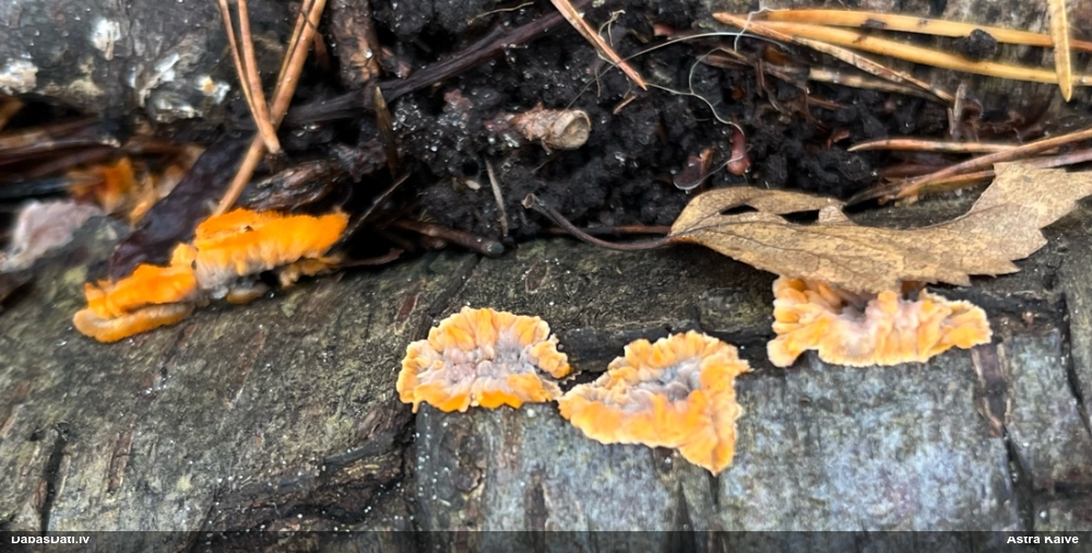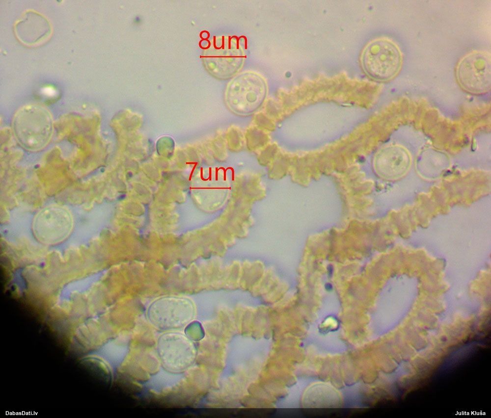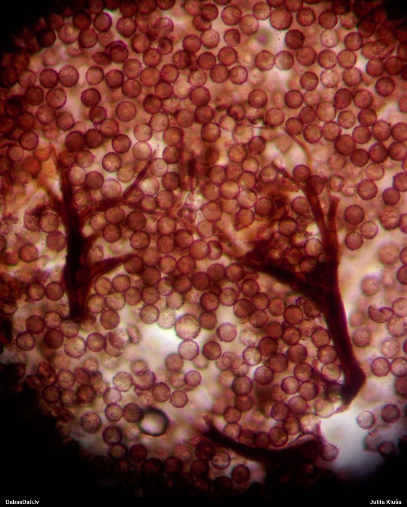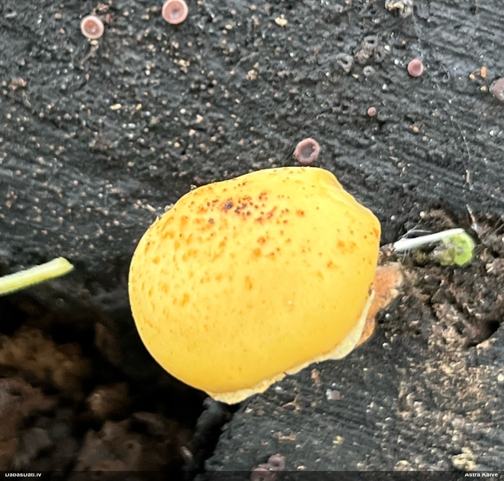 Milzumpaldies, Iveta! Kad būs skaidrs, ka dabasdati pēc mēneša dodas no šīs vietas prom uz jaunām mājām, plānoju atjaunot atslēgu, "izspiežot" no Dabasdatiem visu jaunāko info, un tādi pieredzes stāsti labāk palīdz saprast, kas jālabo. Ideāla gan nebūs, jo tam man nav laika (un finansu), bet kaut ko vismaz. :) Bet hipotēze sakrīt ar to, ko es redzēju, saņemot paraugu. :)) Un pēc atslēgas man arī tā ar visu oranžo krāsu sanāca kā viena no 2 pamathipotēzēm, bet man papildus bija zināms substrāts (iespējams, melnalksnis), vienīgi formu ievadīju kā apaļīgu, jo paskatījos, ka atslēgā izstieptā ir tāda ļoti izstiepta. Bet pilienveida arī būtu bijis jāizskata. Tā ka paldies abām, Ivetai un Renātei! Kaut kad vēlāk, kad būs vairāk laika, arī mikroskopēšu, bet izskatās visai pārliecinoši ar atsevišķiem (no sporu mākoņa), platiem kausiņiem.