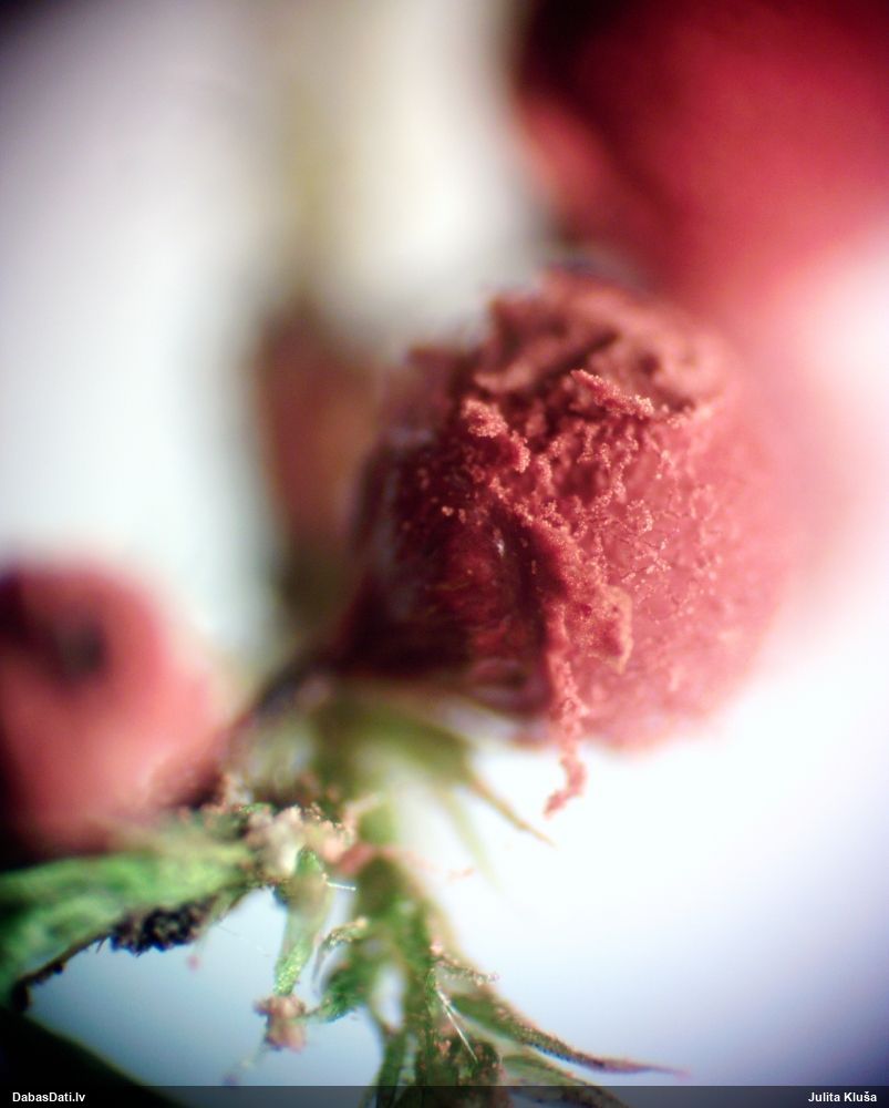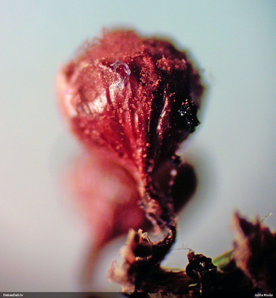 Riskēju, neredzot mikroskopijas foto, bet uz ābelēm vajadzētu būt H.karstenii. A.Kunts teica, ka uz ābelēm esot bieži sastopama Trichia contorta (plašā nozīmē), bet aizdomājās, ka man varētu būt taisnība, ka šaurā nozīmē varētu būt arī H.karstenii, - tiktāl viņš neesot iedziļinājies. Bet "spurainais apraksts" mikroskopijai liecina par H.karstenii, kādu es to saprotu.