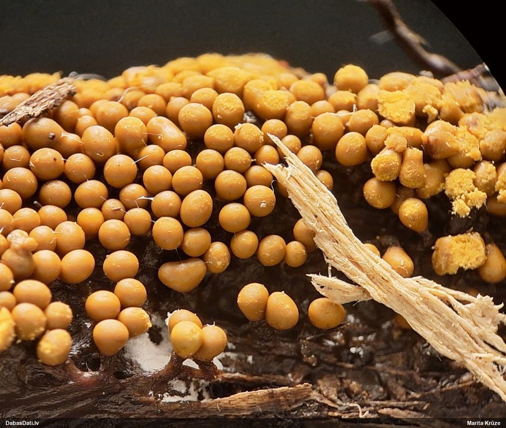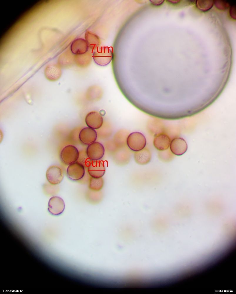 Milzumpaldies, Iveta! Kad būs skaidrs, ka dabasdati pēc mēneša dodas no šīs vietas prom uz jaunām mājām, plānoju atjaunot atslēgu, "izspiežot" no Dabasdatiem visu jaunāko info, un tādi pieredzes stāsti labāk palīdz saprast, kas jālabo. Ideāla gan nebūs, jo tam man nav laika (un finansu), bet kaut ko vismaz. :) Bet hipotēze sakrīt ar to, ko es redzēju, saņemot paraugu. :)) Un pēc atslēgas man arī tā ar visu oranžo krāsu sanāca kā viena no 2 pamathipotēzēm, bet man papildus bija zināms substrāts (iespējams, melnalksnis), vienīgi formu ievadīju kā apaļīgu, jo paskatījos, ka atslēgā izstieptā ir tāda ļoti izstiepta. Bet pilienveida arī būtu bijis jāizskata. Tā ka paldies abām, Ivetai un Renātei! Kaut kad vēlāk, kad būs vairāk laika, arī mikroskopēšu, bet izskatās visai pārliecinoši ar atsevišķiem (no sporu mākoņa), platiem kausiņiem.